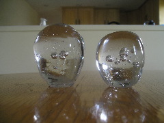The first few I did were clear glass, trying to get the feel again of working with hot glass. This is the nicest photo, though there is a nicer clear round one. I couldn't get a decent shot of it at all.